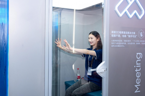 【图为参观者体验腾讯会议裸眼3D通话舱】
