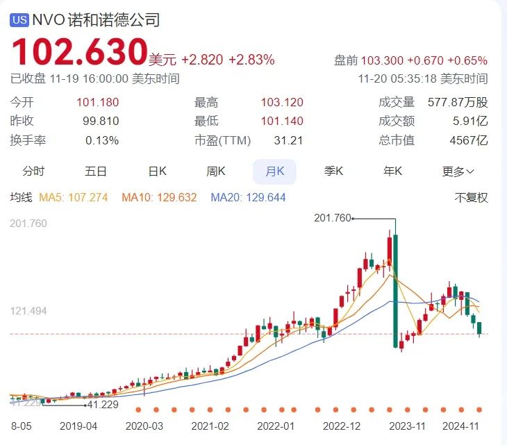 2021年4月在中国市场上市以来,司美格鲁肽(诺和泰)的收入分别为3.12亿元、22亿元、49.40亿元。尽管受到汇率变动一定影响,但增长态势十分明显。考虑到诺和盈的单价更高,受众更广,其收入情况应该更加可观。