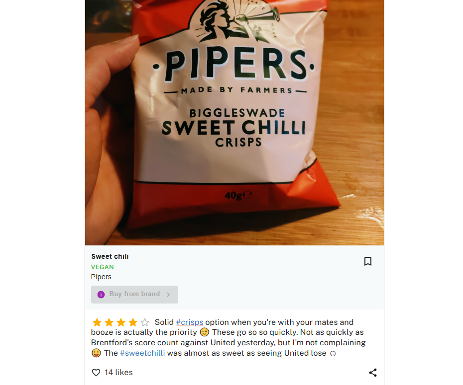 Pipers品牌致力于使用优质、天然的原料来制作手工薯片,主打甜辣口味,尤其受到对辛辣食物偏好的消费者青睐。广受欢迎的sweet chilli crisps使用来自本地的Biggleswade辣椒,减少进口成分的添加。