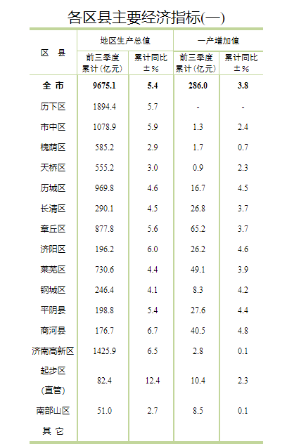 11月7日,济南市发布2024年前三季度区县主要经济数据,15区县(功能区)2024年经济“三季报”数据均已出炉。