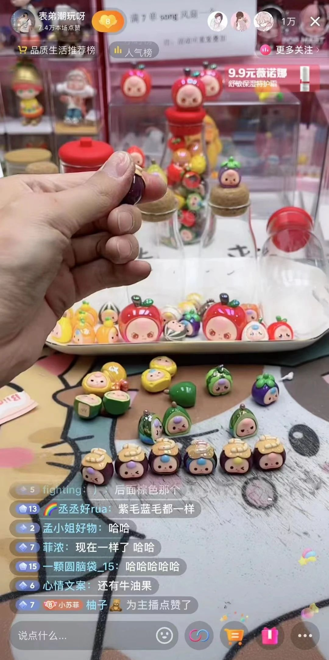 有一回,他在义乌进货,看到一款树胶盲盒,一个可爱的小女孩形象,他随手买了一些。当天晚上,一上链接就被粉丝们买完。第二天,他又进货几十个,库存继续被迅速清空;第三天,再翻倍进货,再一扫而空……