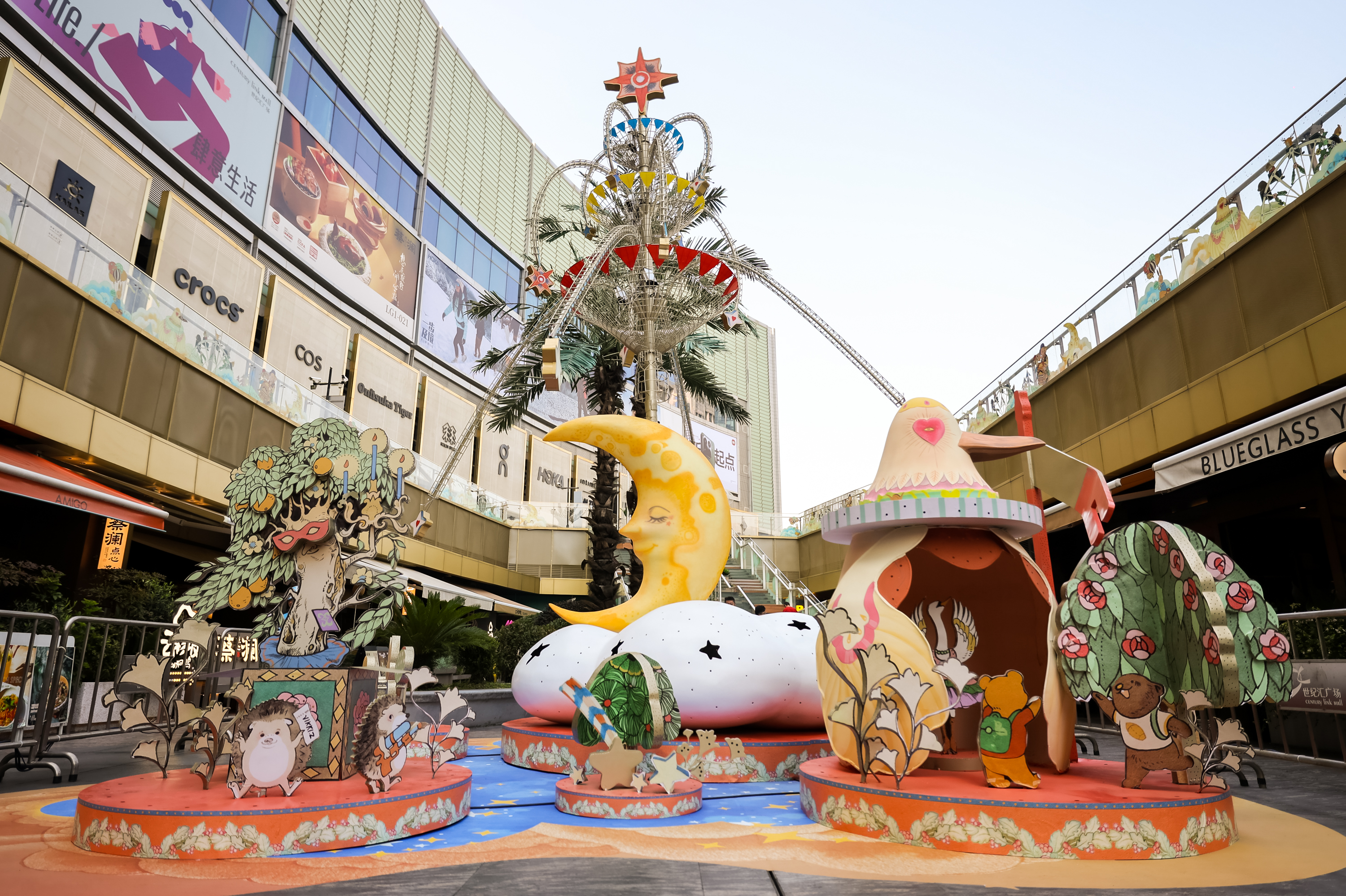 世纪汇设置6大场景,将“绮遇之境”覆盖至商场、办公楼全域。从地铁世纪大道站8号入口步入,“绮境序章”于此展开——绮境插画元素悬挂在星光瀑布中,引领消费者进入绮丽之境。抵达露天广场,纯白枕头形态的底座支撑着月亮喷泉,众多璀璨的星星从中喷涌出,象征无数节日的故事在此交叠,构筑一方“绮境花园”。从露天广场向左,节日之花元素顺着商场通道蔓延,化为“绮境入口”引领人们继续这场绮遇之旅。在LG1 POPARK,“绮境剧场”华丽上线,艺术家作品中的人物元素仿佛于此演绎着永不停歇的欢乐剧目。