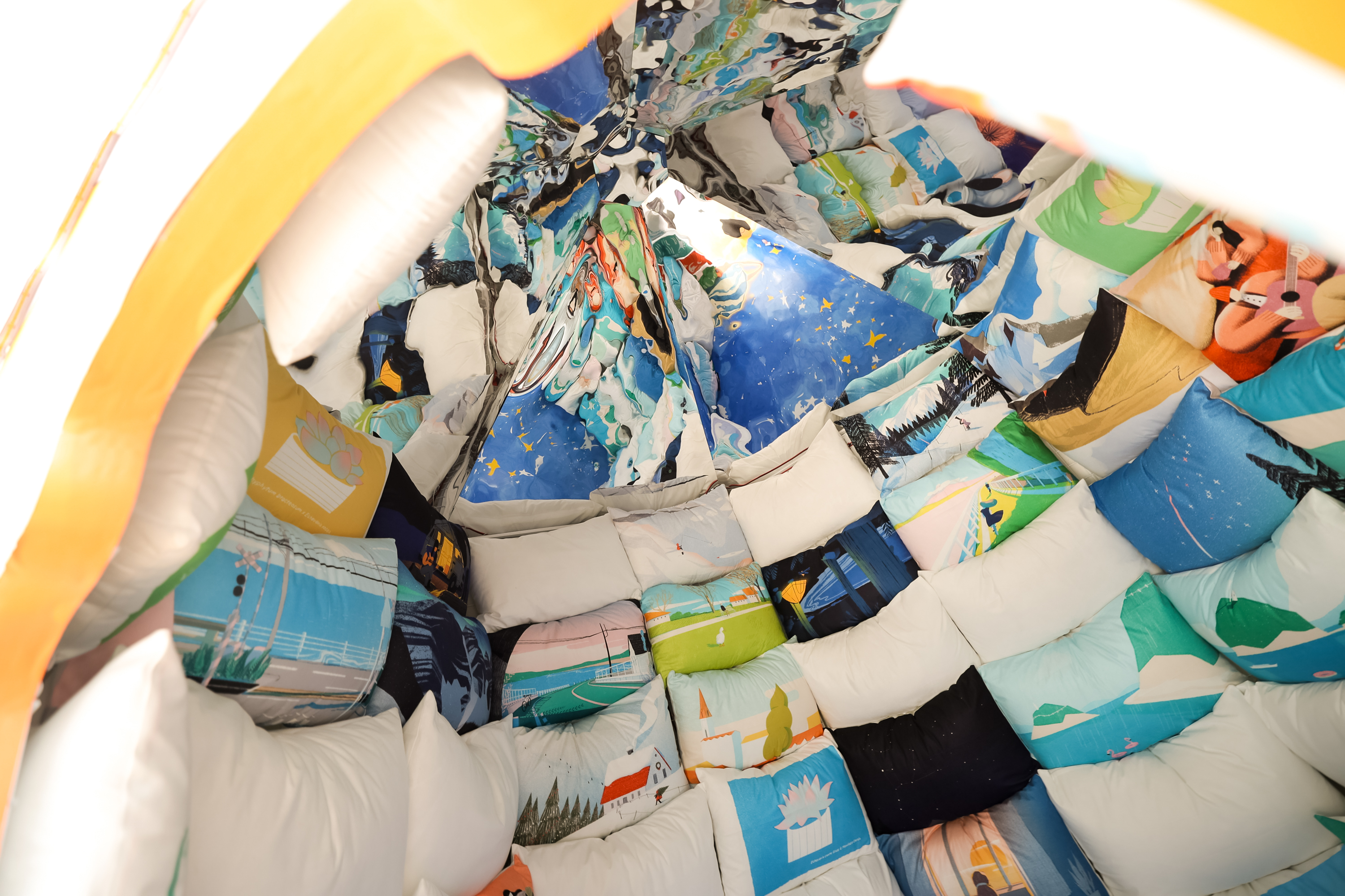 在办公楼区域,“绮遇乐园”“偶入绮境”两个装置均以游乐场为灵感,创造出摩天轮、旋转杯、旋转木马、爆米花的梦幻组合,营造充满欢乐的节日气氛。在“偶入绮境”内另有一片“梦的迷宫”,伴随着自然界声音,墙壁和天花板还被不同“梦境故事”枕头覆盖。繁忙的工作生活中,世纪汇希望白领可在这方独特的空间内,享受心灵的片刻沉静。