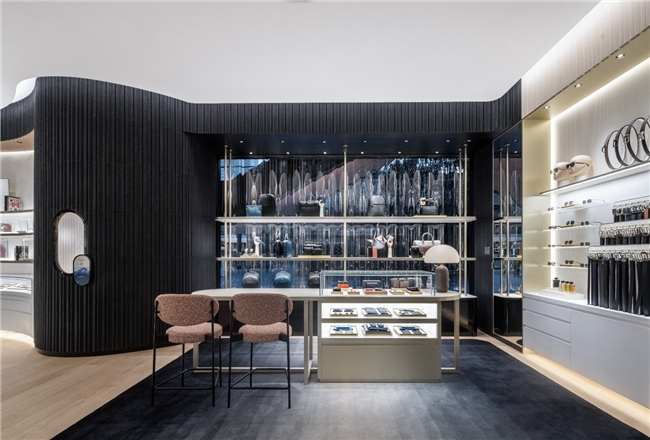 全新概念旗舰店的整体创意设计由万宝龙全球艺术创意总监Marco Tomasetta先生亲自操刀,以诸多匠心独运的书写元素设计细节,体现根植于万宝龙品牌核心的书写艺术之美。店铺整体设计采用黑、白、金主色调,呼应万宝龙标志性大班系列书写工具的经典配色,以此庆祝传世杰作诞生一百周年。黑色外墙配色呼应大班系列墨水笔的黑色名贵树脂笔身,立体纹理细节展现书写笔触的流畅线条,其上瞩目的勃朗峰轮廓,与品牌总部位于德国汉堡的“万宝龙之家”的外墙如出一辙。波纹玻璃橱窗的设计灵感源自万宝龙瓶装墨水的造型,店内定制的地毯则精妙呈现墨晕的独特效果,宛若文人挥毫泼墨于纸上,为空间营造浓郁的书写氛围。