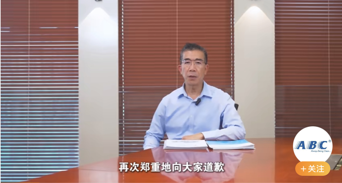 邓景衡在视频中表示,这段时间ABC因为国标负差和经销商客服的不当言论,收到了许多消费者的批评。他不做任何辩解,再次郑重地向大家道歉。