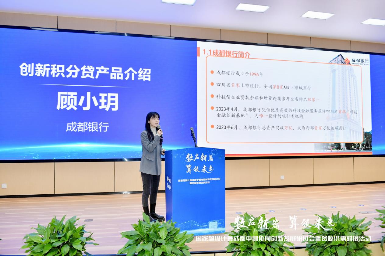 畅通金融活水,打通科技型企业堵点卡点。近年来,成都市积极开展“企业创新积分制”推广应用,激发科技企业创新活力,破解优质科技型中小企业发现难、支持难、融资难问题,推动创新链、产业链、资金链、人才链深度融合。为进一步助力企业发展,本次活动特邀成都银行相关负责人为到场嘉宾详细介绍《创新积分金融服务方案》。通过将“企业创新积分”作为银行授信的重要依据,引入政府风险资金池损失分摊机制,降低融资门槛,降低融资成本,解决科技型企业融资难融资贵问题。