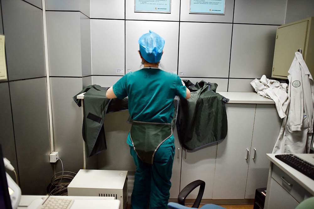 2016年,王硕开始上台担任术者的助手,做消毒工作,穿刺动脉。最初几次,她穿刺不成功,术者就接过来帮忙。后来熟练了,可是穿着30斤重的铅衣,站立数个小时做手术,还是累得快虚脱了。她担心如果体力不支,免疫力一旦下降,射线就会变得危险。她不想冒险,“如果身体出了问题,家人怎么办?有时候会想,人生还是要平衡,健康是底线。”