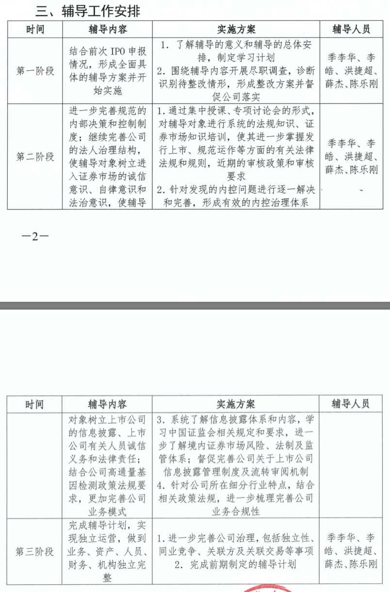 根据辅导工作的安排,第一阶段,辅导机构将结合前次IPO申报情况,形成全面具体的辅导方案并开始实施。