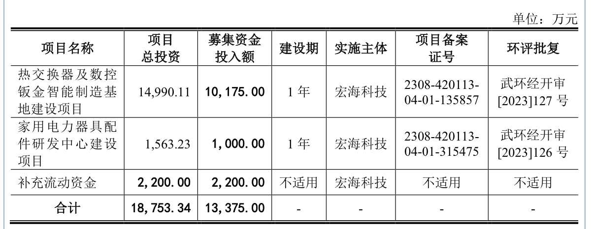 资料显示,宏海科技主营业务为空调结构件、热交换器、显示类结构件等家用电器配件产品的研发、设计、制造和销售,与美的、海尔、冠捷科技等主要客户建立了长期稳定的合作关系。2024年上半年宏海科技的营业收入达2.31亿元规模,净利润有4524.24万元。