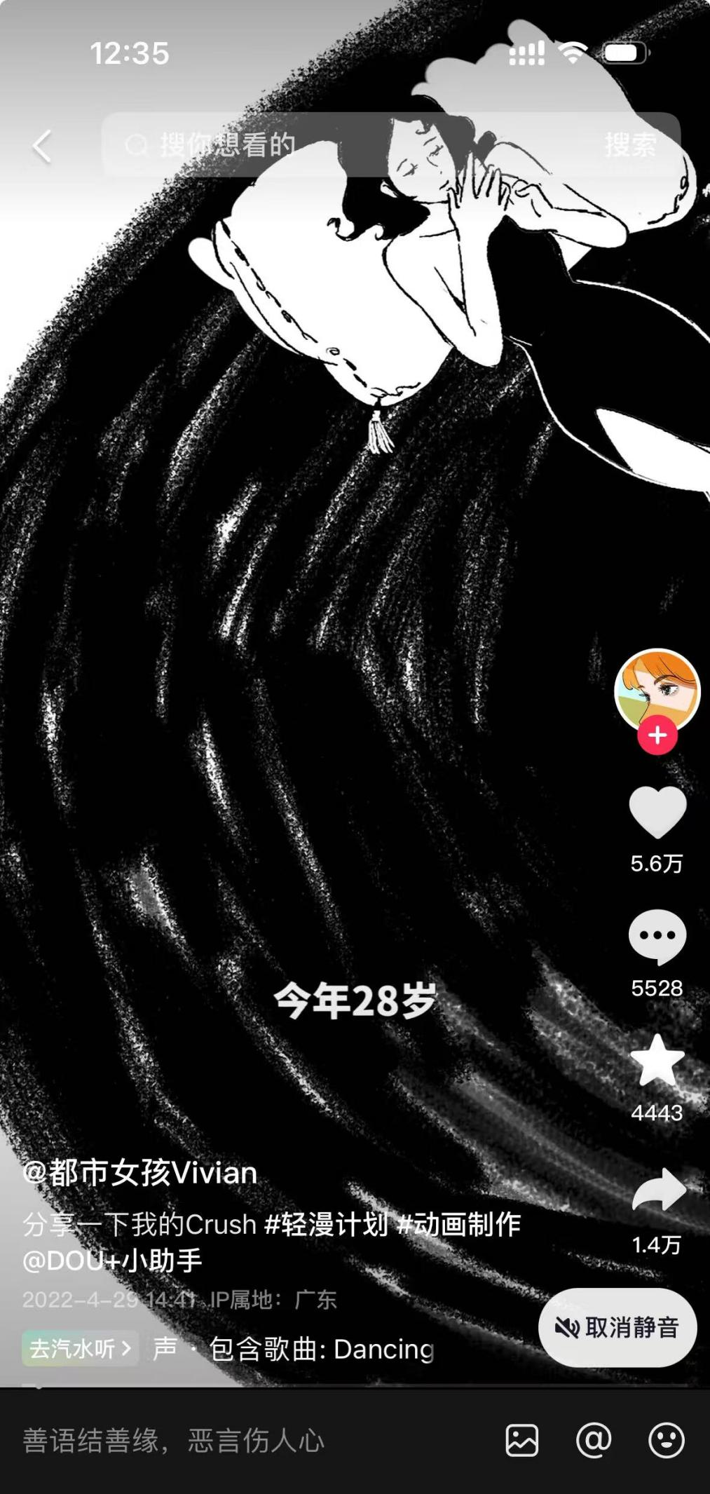 不知道是哪天,林悦(化名)的抖音信息流里出现了一段动画视频。视频里,都市女孩Vivian在为给朋友送什么礼物发愁。和男朋友一番讨论之后,Vivian意识到了自己在送礼物这件事上的拧巴之处,选择了回归内心的宁静。最后,Vivian在得物上给自己买了台胶片相机。