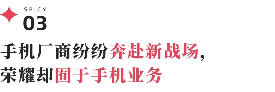 事实上,购物节仅仅是一个典型切片。伴随着中国智能手机红利消逝,荣耀的“微笑曲线”早已有触顶的迹象。考虑到接下来,中国智能手机市场竞争将愈发激烈,其他手机厂商纷纷讲出极具成长性的生态、造车等“新故事”,押宝空洞AI技术的荣耀,或将直面巨大的下行压力。