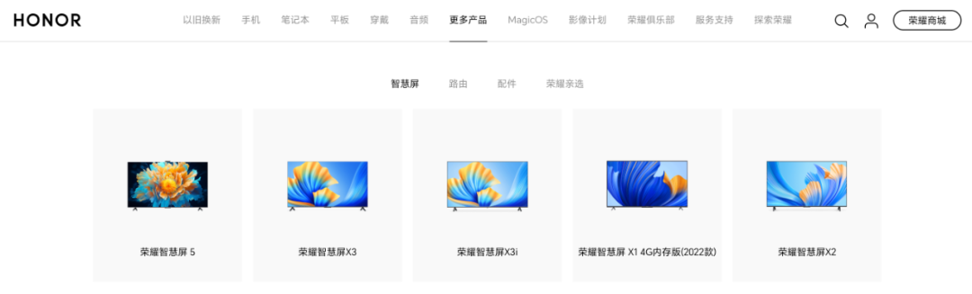 不过由于放弃了智能电视最重要的广告营收来源,并且主打极致低价,利润空间极窄,荣耀智慧屏很难长久运营下去。2023年7月更新完荣耀智慧屏5后,荣耀的智慧屏产品线再未更新。剁椒Spicy了解到,目前荣耀已边缘化智慧屏业务。