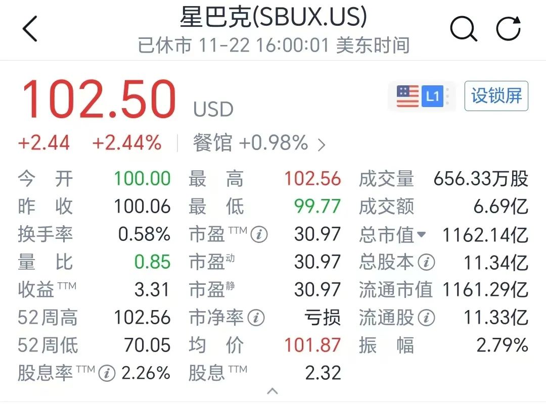 三季度,星巴克的收入只增长了0.5%,净利润同比下滑8.8%。在经历更换高管、利润下滑、出售中国业务等连续的传闻和动荡以后,星巴克的股价仍然坚挺,市盈率高达30倍,相当于瑞幸的三倍。