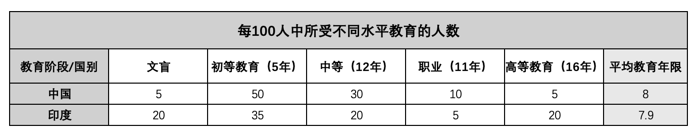 印度则正好相反,更关注高等教育和精英教育,教育普及是“自上而下”的过程。延续了殖民地时期的传统,印度的教育资源主要集中在中学和高等教育上,直到1990年才“后知后觉”,开始大力普及小学教育,2009年才开始实施义务教育,相比中国晚了近25年。