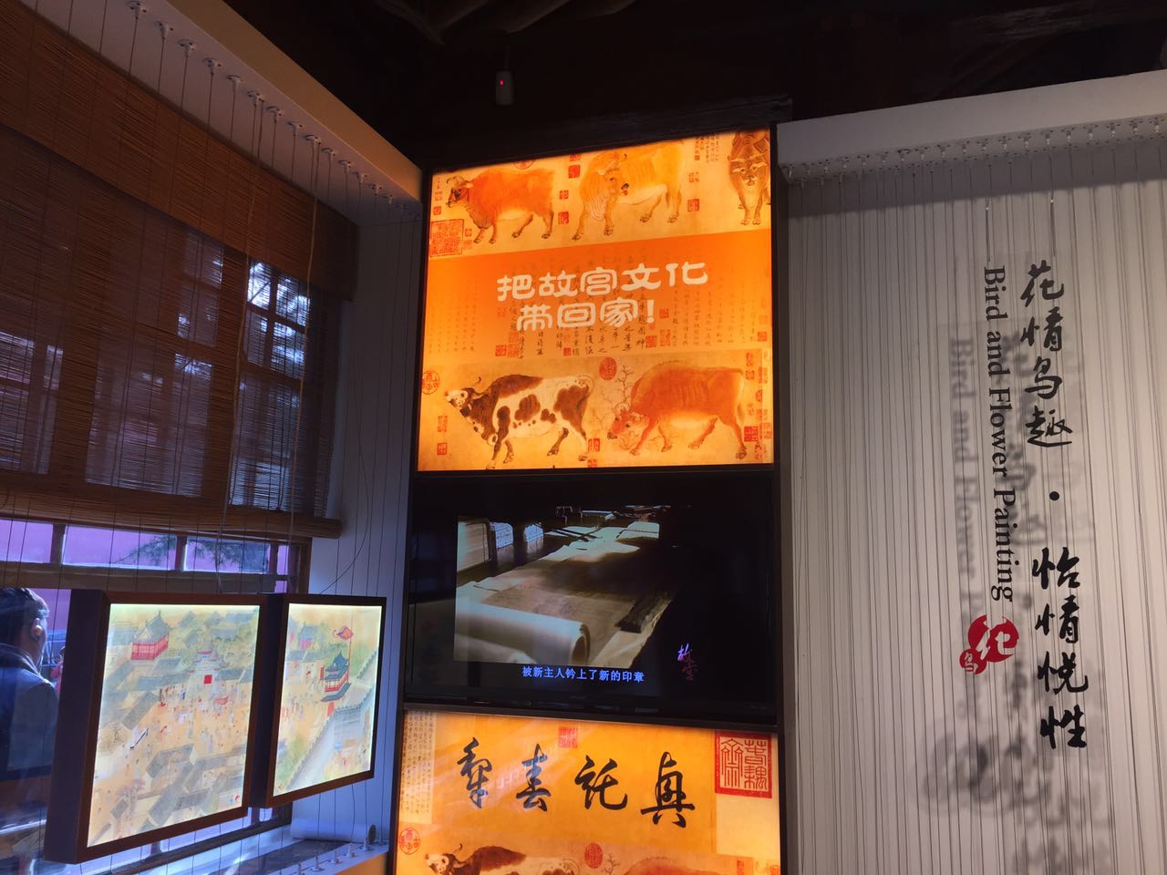 取而代之的,则是神武门东长房一排新规划的“故宫文创馆”,服饰、瓷器、木艺、陶瓷、铜器、影像、丝绸等有了分门别类的展示空间。购买方式还增添了科技感:在影像馆看中的书画作品,可以通过机器复制买走。