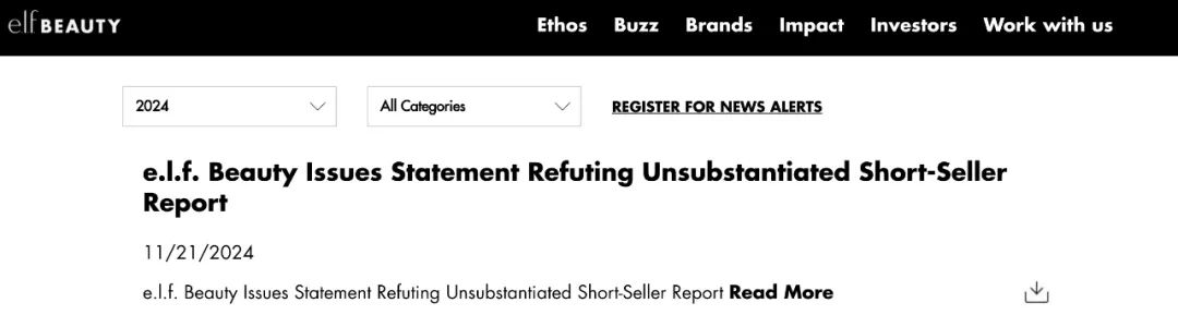 elf Beauty董事长兼首席执行官Tarang Amin对此反驳称,“在2025财年第二季度(截至2024年9月30日的三个月),elf Beauty的销售有所增长,且消费者数据显示elf Beauty的市场份额仍在扩大。”