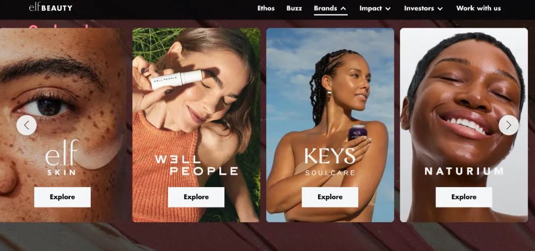 2020年,elf Beauty开始了公司细分业务的扩张,试图从彩妆延伸至护肤品类,并以2700万美元(约合人民币1.96亿元)的价格收购了清洁美容品牌Well People。同年,elf Beauty还宣布与美国歌手Alicia Keys一同打造了生活方式品牌Keys Soulcare;2022年,elf Beauty正式推出e.l.f品牌的护肤线“e.l.f. SKIN”,其中包括面霜、眼霜、乳液、卸妆膏等产品。