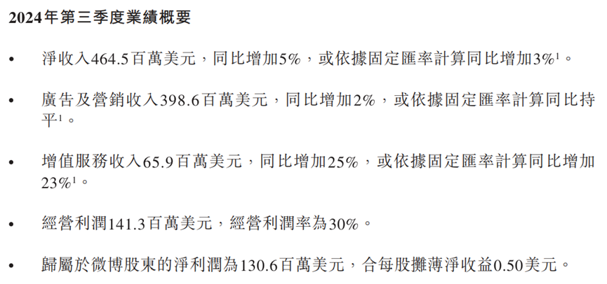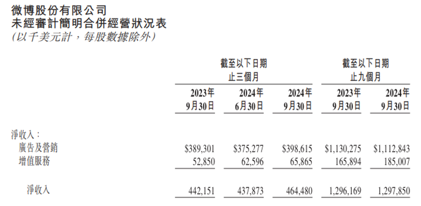 图源:微博2024年Q3财报