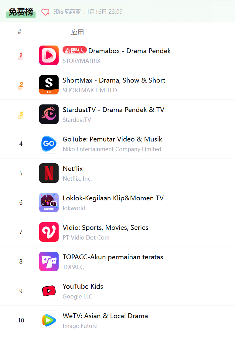 东南亚最重要的印尼市场Google排名,前三名全部是中国短剧出海平台