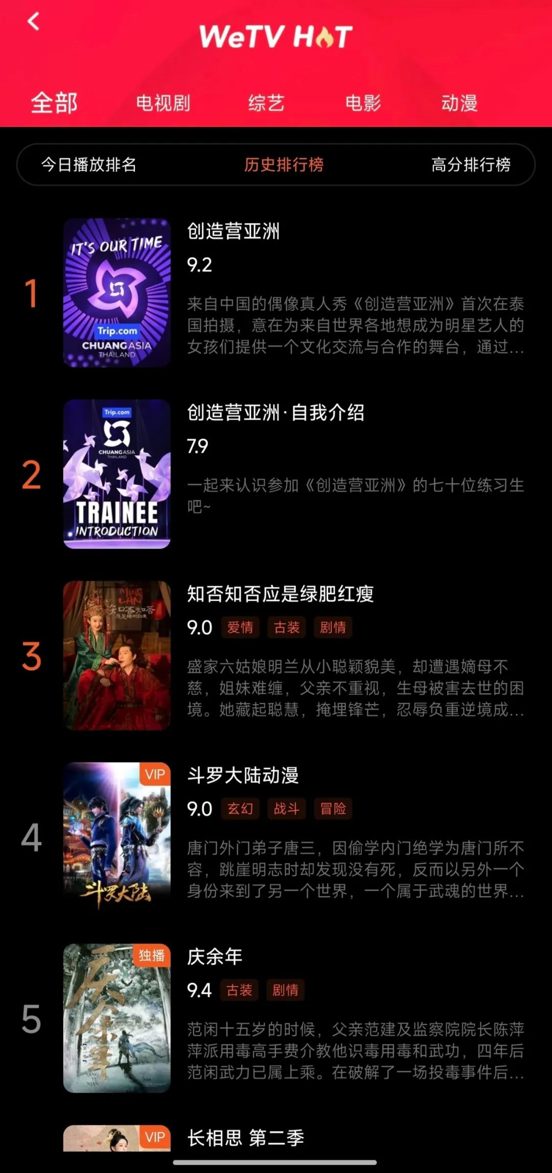 而在爱奇艺国际版热度排名前15的电视剧中,源自国内站的电视剧有10部;We TV的电视剧历史排行榜的前15名,均为国内站电视剧。基于文化同源的先天优势,凭借国内站爆款剧主攻东南亚市场,是各家平台国际版在发展初期站稳脚跟的关键。
