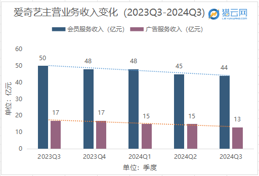 其中,作为贡献了近八成营收的会员服务和广告服务业务,本季度都呈现了一定程度的下滑。