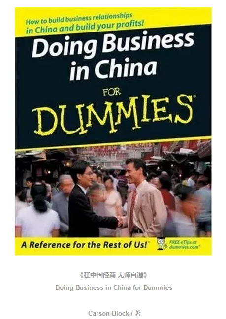 我们时不时会看到国外机构做空中国概念股的新闻。在美国,有20多家专门针对中概股的做空机构,最著名的就是浑水。浑水的最大优势在于其创始人Carson Block是一名“中国通”。Carson Block 1998年就在上海工作过,并于2007年出版了《在中国经商-无师自通》“Doing Business in China for Dummies”。