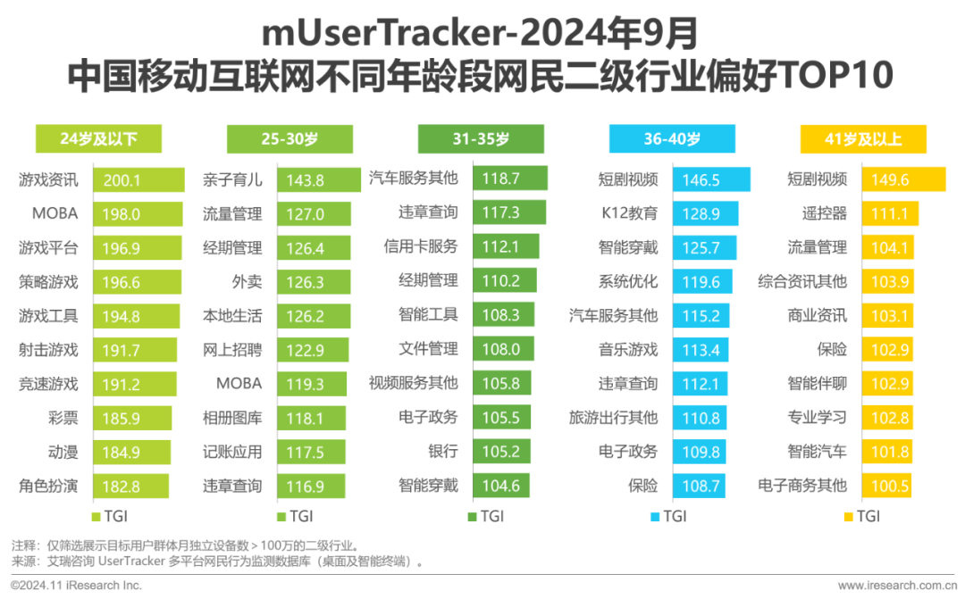 年龄差异影响网民行业偏好,不同年龄段各有关注重点
