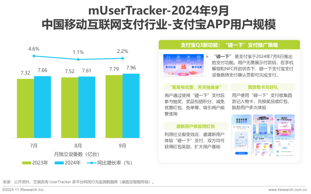支付宝凭借“碰一下”支付新功能及其多元推广策略,进一步巩固了在移动支付行业的地位
