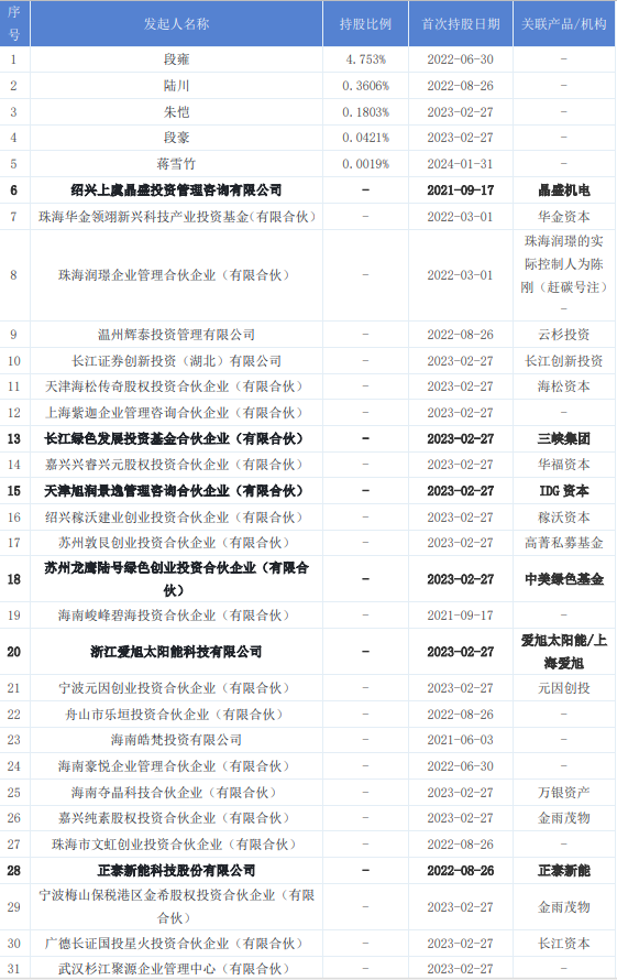 来自光伏行业的战略股东还包括正泰、爱旭、晶盛机电三家明星企业。此外,还包括众多明星资本,比如搭台唱戏的IDG、国资三峡,以及中美绿色基金。