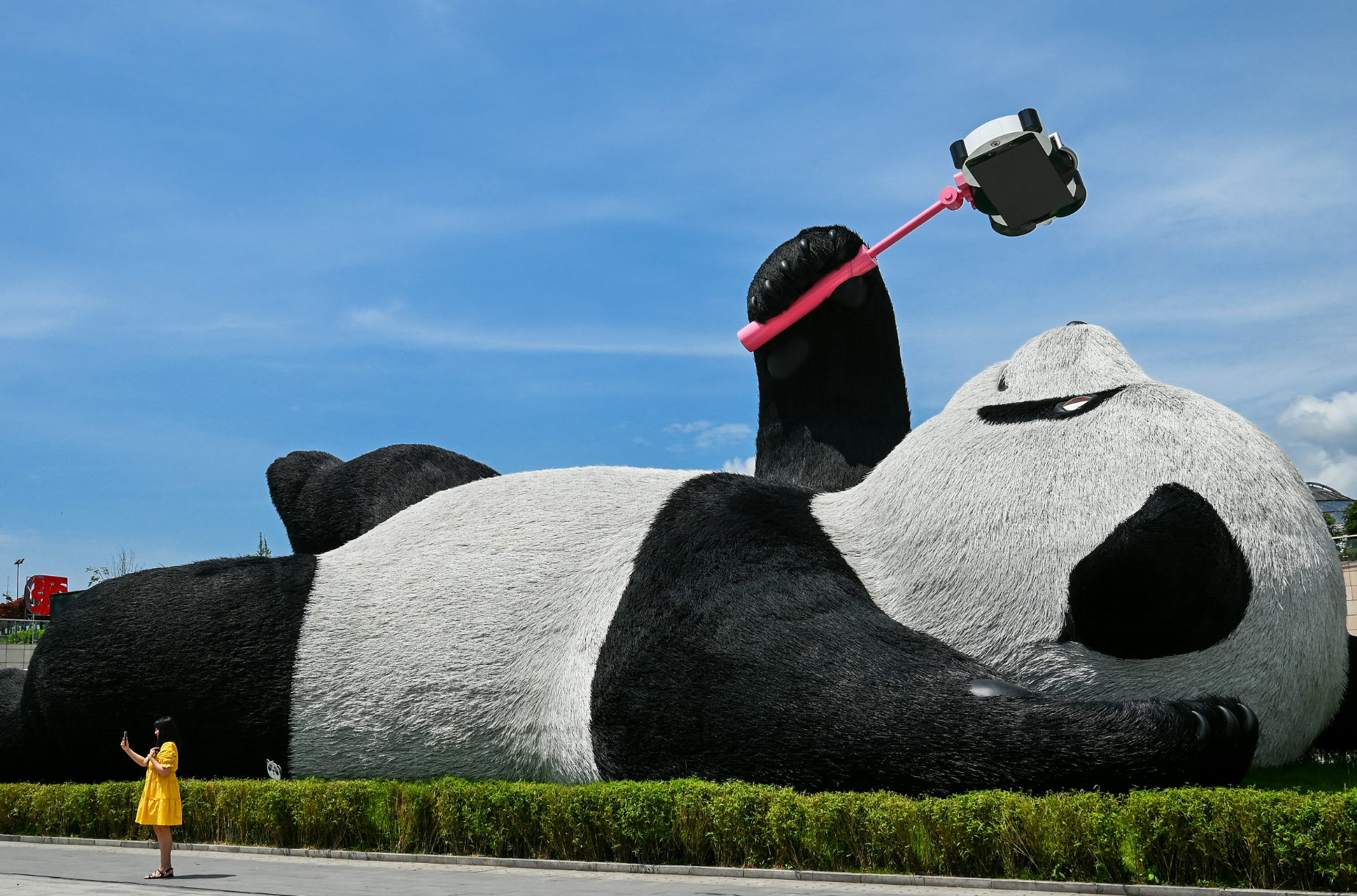 在灌口街道仰天窝广场,一只神态悠闲的“自拍熊猫”,引得游人纷纷与它合拍。这座巨型艺术装置是荷兰艺术家费洛伦泰因·霍夫曼设计的标志性建筑,长26米、宽11米、高12米,重达130吨。与熊猫合完影,还可以参观伟大的水利工程都江堰——建于秦昭王末年(约公元前256年~前251年),当今世界年代最久远、唯一留存、无坝引水的水利工程。