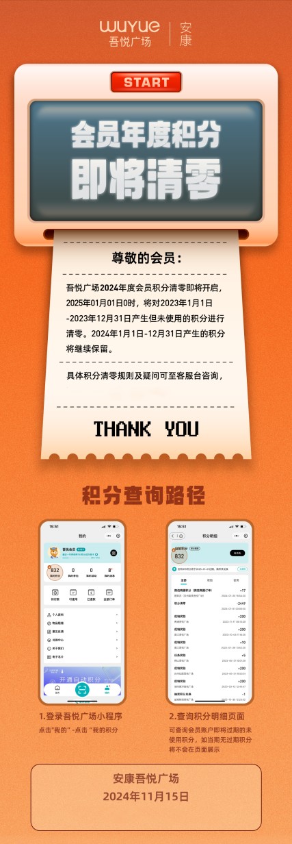 此次年度积分清零,不仅让吾悦会员的积分得到了有效利用,更提升了安康吾悦广场的品牌影响力和顾客满意度。未来,安康吾悦广场将继续推出更多丰富多彩的活动,为顾客带来更加优质的购物体验。