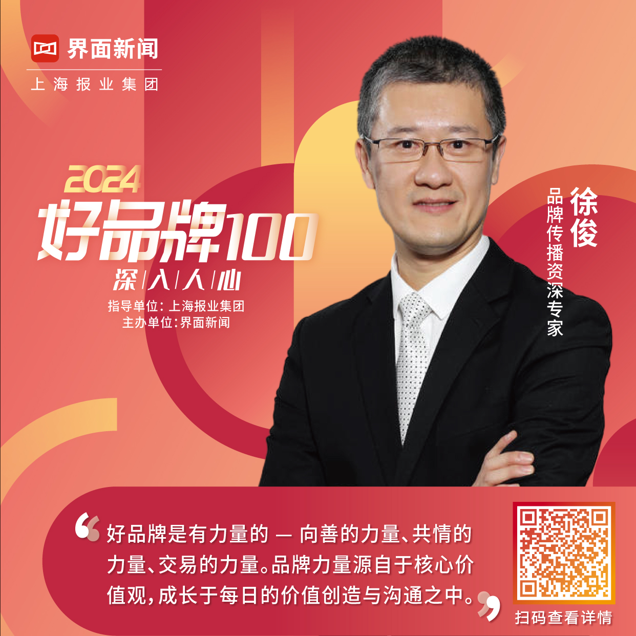 在此背景下,上海报业集团 | 界面新闻再度举办2024【好品牌100】评选活动。本次评选活动以寻找讲好品牌故事、拥有核心竞争力、持续创新、面向国际的“好”品牌,推动社会各界参与共建繁荣的品牌生态为目标,将聚集100位专家,聚焦100个行业赛道,最终评选出100个好品牌。由此,我们期待与各行各业对品牌发展有所思考的同仁一道,在对“好品牌”不断的重访中,寻得中国社会品牌向更好,向更善发展的未来可能。