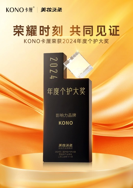 近日,在美妆头条主办的2024年第二届中国个护大会上,KONO卡厘凭借其卓越的产品表现,从众多参与品牌中脱颖而出,荣获年度个护大奖“影响力品牌”。