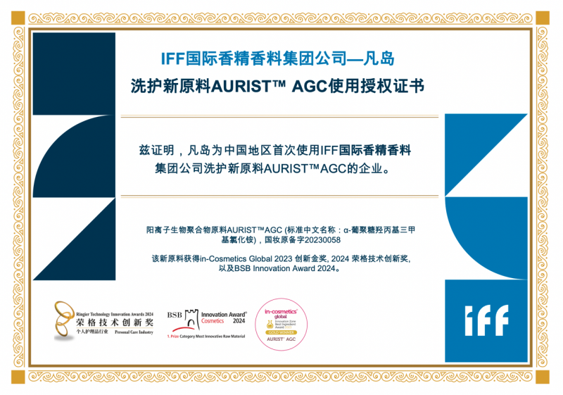 这一成分源自IFF国际香精香料公司(简称:IFF)旗下新发布的阳离子生物聚合物原料AURIST™AGC(标准中文名称:α-葡聚糖羟丙基三甲基氯化铵,简称:AGC)。AGC成分的添加让头发持久蓬松的同时,头皮的pH值保持在健康弱酸性的范围,具有更高的温和性和梳理性。