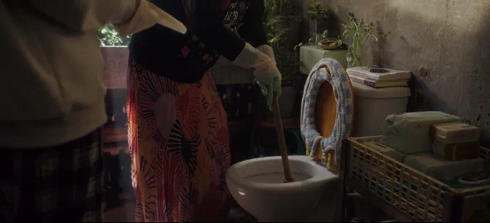影片中宋佳饰演的王铁梅,人到中年,不得不面对调查记者到自媒体的工作赛道转变,在这份新工作前已经做黄了两个公号。钟楚曦饰演的小叶,厕所里种满绿色蔬菜、囤积了大量方便食品和纸巾,赵又廷饰演的前夫在离婚后选择开专车,这些元素,无不在提醒着观众,这便是当下的上海。社会气氛和经济形势留在人们身上的印记,如同那只「屋中大象」一般,仍旧绵延地散发着影响。
