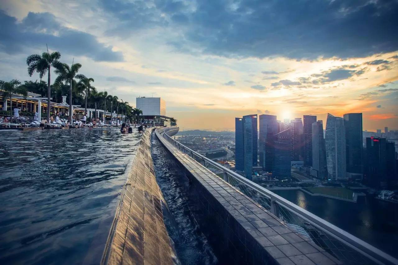 屋顶泳池就建在这座酒店55层高的塔楼顶层,是奥运泳池长度的三倍,泳池本身高度就已经超过了埃菲尔铁塔。游客在游泳的同时,还能俯瞰新加坡的城市景观,加上泳池的特殊设计令水体仿佛能延伸到视野的尽头。