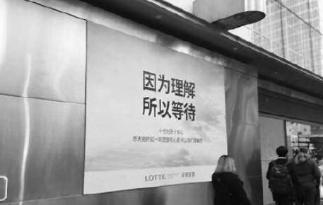 最近,乐天向赴韩中国游客打起了感情牌,在其韩国主要酒店、免税店外的墙壁和玻璃橱窗上,都张贴了“因为理解,所以等待”的中文字样,显然是给中国游客看的,