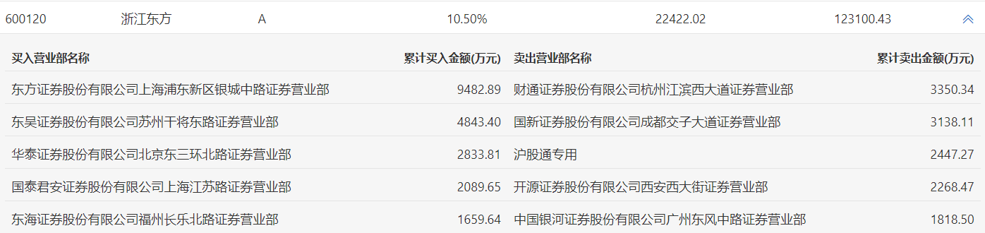浙江东方今日涨停,龙虎榜数据显示,上榜营业部席位全天成交3.39亿元,占当日总成交金额比例为27.56%。其中,买入金额为2.09亿元,卖出金额为1.3亿元,合计净买入7886.69万元。