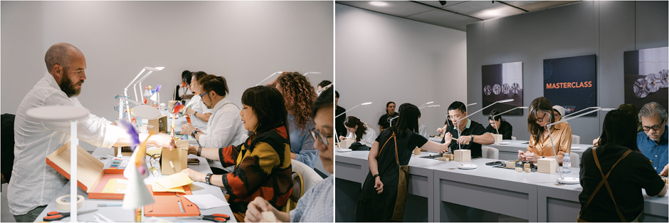 本届钟表论坛呈现九场亲授大师班,涵盖锡钟制作、茶叶调配、由 Elaine Wong 主理的书法及由 Fiona Krüger 主持的创意 Automata 工作坊,带领参会者深入探索精妙高超的钟表制作工艺和匠心匠艺。 在“夜光表针绘制体验”的工作坊中,来自Wristcheck的专业制表师全程指导参与者,逐步去除时针与分针上的原有涂层,并精细地重新涂覆一层夜光材料,使表针在黑暗中焕发出明亮光彩。在欢快惊喜的氛围中,参与者们圆满完成了这场别具匠心的大师班体验。