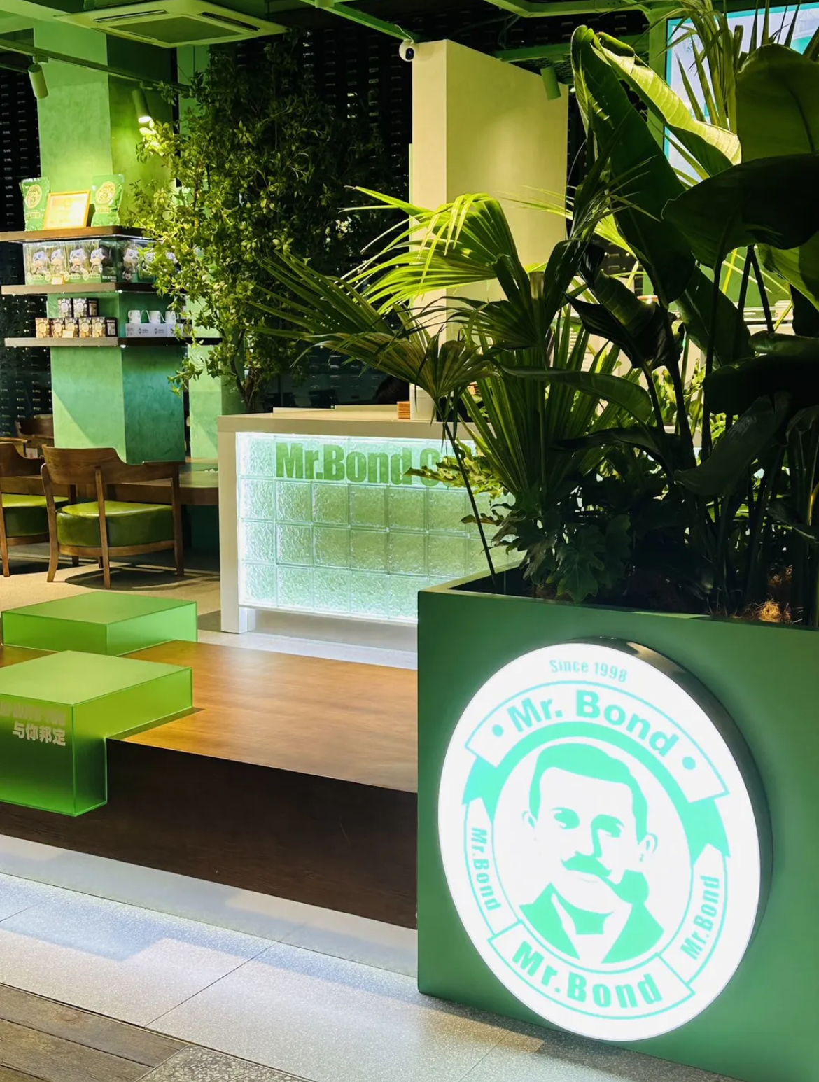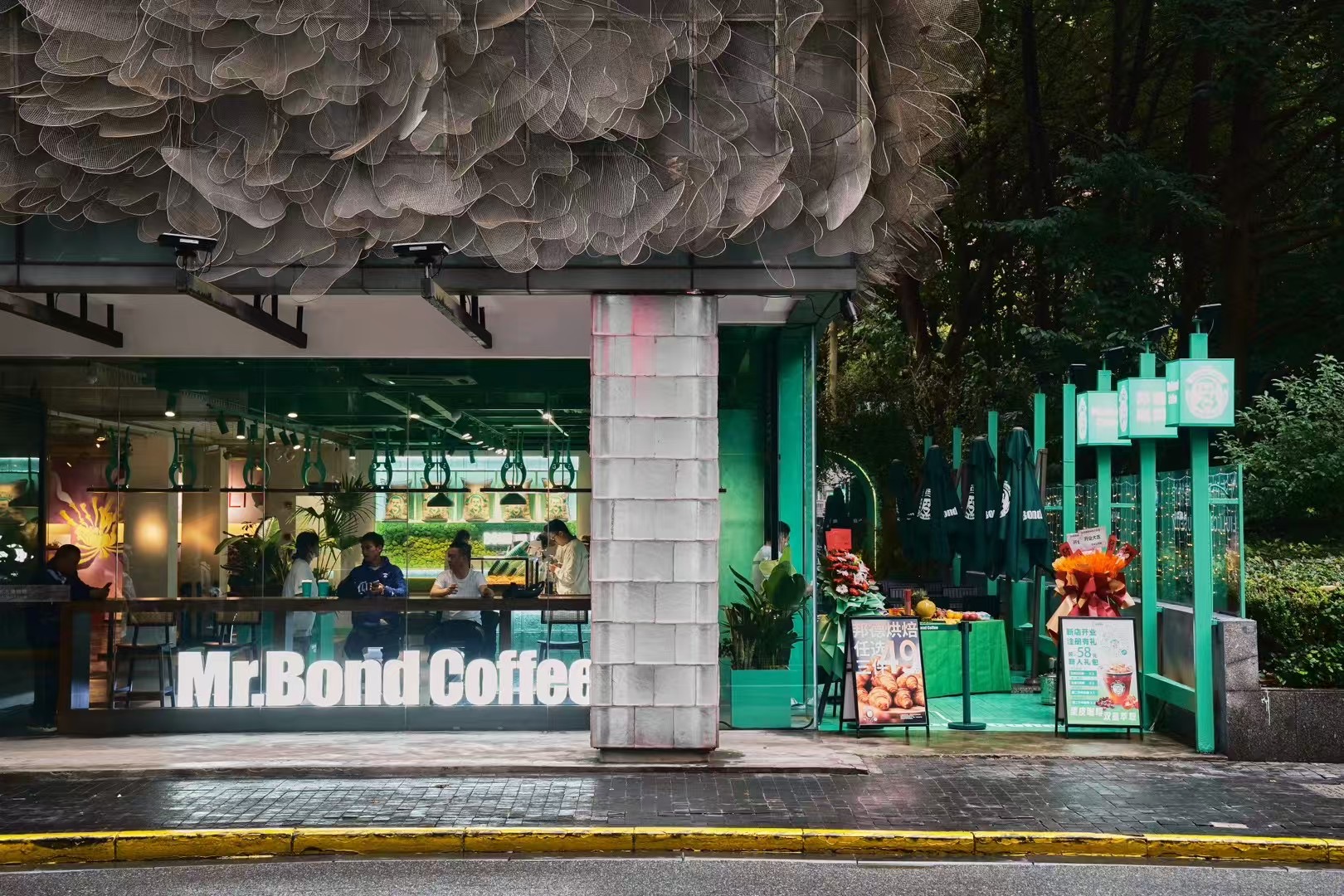 邦德咖啡馆之所以能够在短时间内取得如此显著的成绩,其独特的品牌特色无疑起到了至关重要的作用。从咖啡生豆上选取的绿色为灵感的主色调,营造出清新且充满活力的消费环境,在众多咖啡馆中形成了鲜明的视觉标识,极易吸引消费者的目光并留下深刻印象。