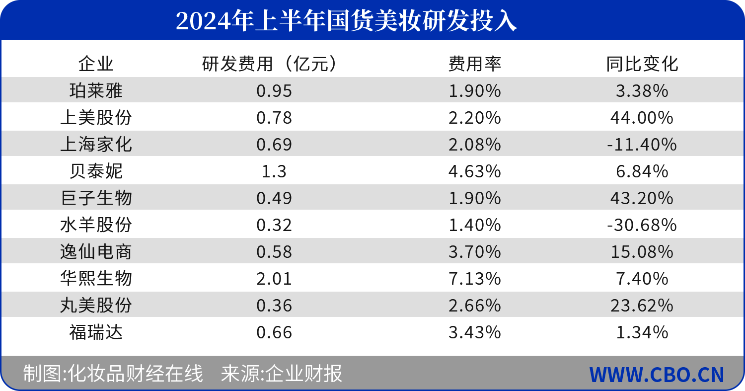 公开财报显示,在2024年上半年,上美股份的研发投入同比增长44%,是十家当中研发投入增幅最高的企业。
