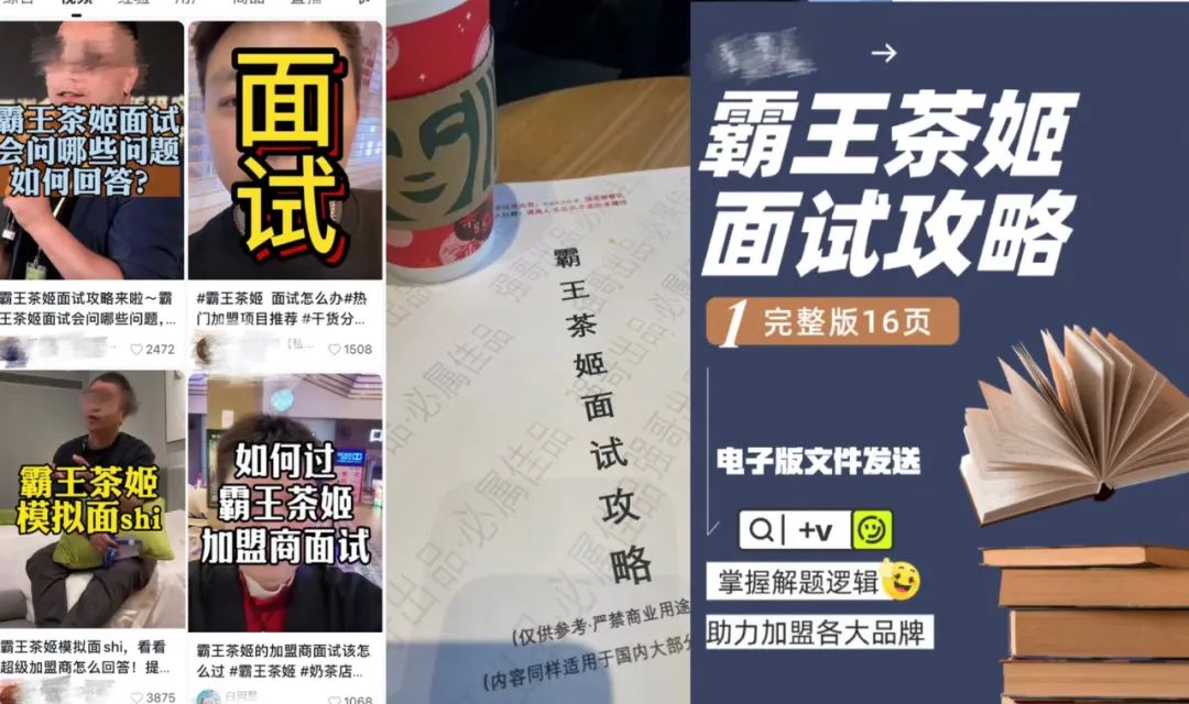 随意点开一个社媒平台,搜索霸王茶姬的加盟商面试攻略,流量高到都能单开一个教辅赛道了。