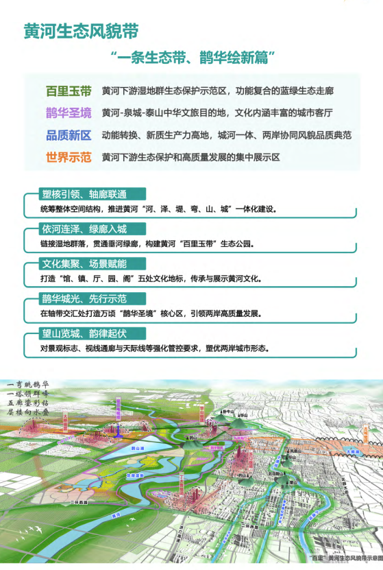 以“山泉湖河城、岳渎齐鲁风、鹊华新画卷”为总体目标,传承特质、彰显品质、塑造品质……近日,《济南市总体城市设计修编》《简称《设计》)公示,并向全社会征求意见,本次修编以泰山、 河为生态本底构筑“大济南”的空间框架,首次对济南全域10244平方公里的全要素空间统筹与设计。