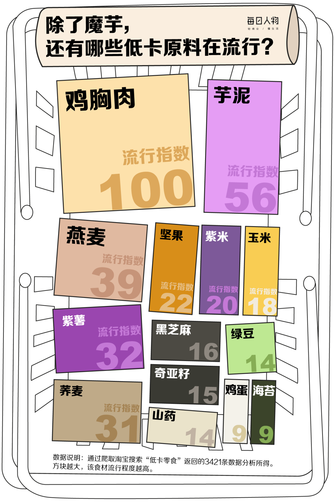 互联网上,几乎所有推荐低卡食物的贴子里,一个必然出现的身影是——魔芋。这是一种由大量的水和纤维组成的食物,几乎不含脂肪和蛋白质,因此本身的热量很低。阿宽把魔芋做成了凉皮和凉面,网易严选出了魔芋粗粮饭,还有蜜雪冰城、沪上阿姨,让魔芋成为“波波脆”的原料,为奶茶平添出一丝健康的味道。