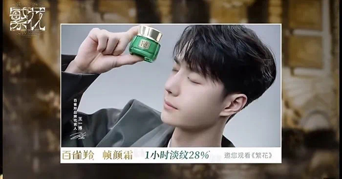 《有翡》、《庆余年》、《繁花》等爆款电视剧合作商中有百雀羚,周杰伦、王一博、辛芷蕾等当红明星也都成为了百雀羚的代言人。新媒体营销上,百雀羚同样拥有辉煌战绩。