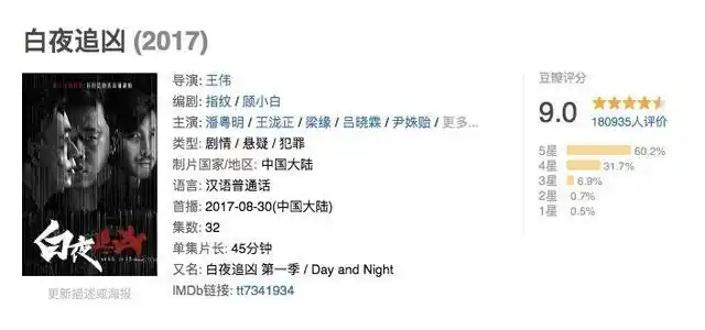 小欢不是追剧迷,但《白夜追凶》凭借重口味的案子、反差的演员形象、双子换身破案的创意,一下就在年轻观众群体里炸开了极大的讨论量,开播两周豆瓣开分9.0,成为多年来国产剧里难得的高分之作,尤其它还是一部当时显得不太常见的网剧。
