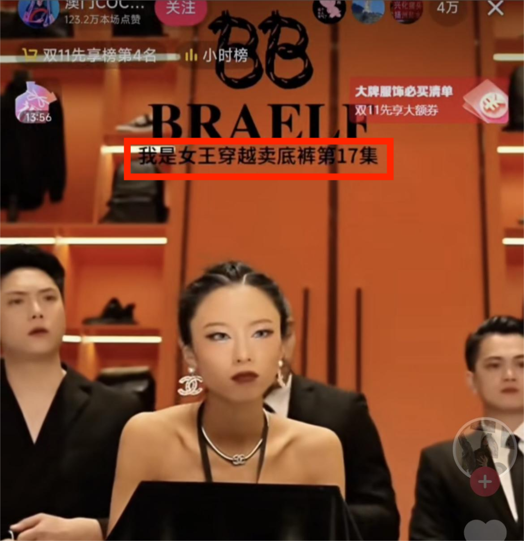最引人注意的是,她的直播间屏幕顶部有一行“我是女王穿越卖底裤第X集”,显而易见使用了短剧卖点。CoCo姐,用的就是女王重生卖底裤的人设。