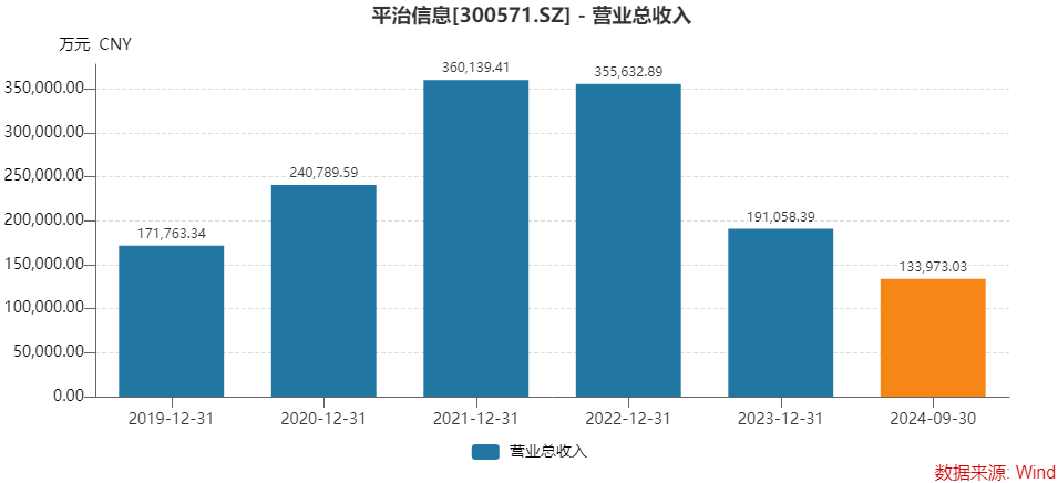 平治信息2022年至2024年前三季度,两年又一期营业收入分别变动-1.25%、-46.28%和-12.04%。归母净利润也在下行。2022年同比腰斩至1.22亿元,2023年亏损3,878.54万元,今年前三季度实现盈利595.93万元,同比下滑超过70%。