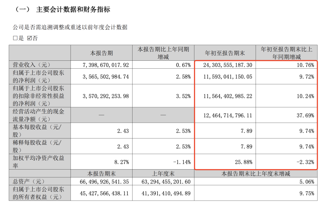 但盈利能力最强的酒业主业在各项指标上都透露着“风险”要素。近日,泸州老窖发布三季报,该公司今年前三季度实现营业收入约243.04亿元,同比增长10.76%;归母净利润115.93亿元,同比增长9.72%。