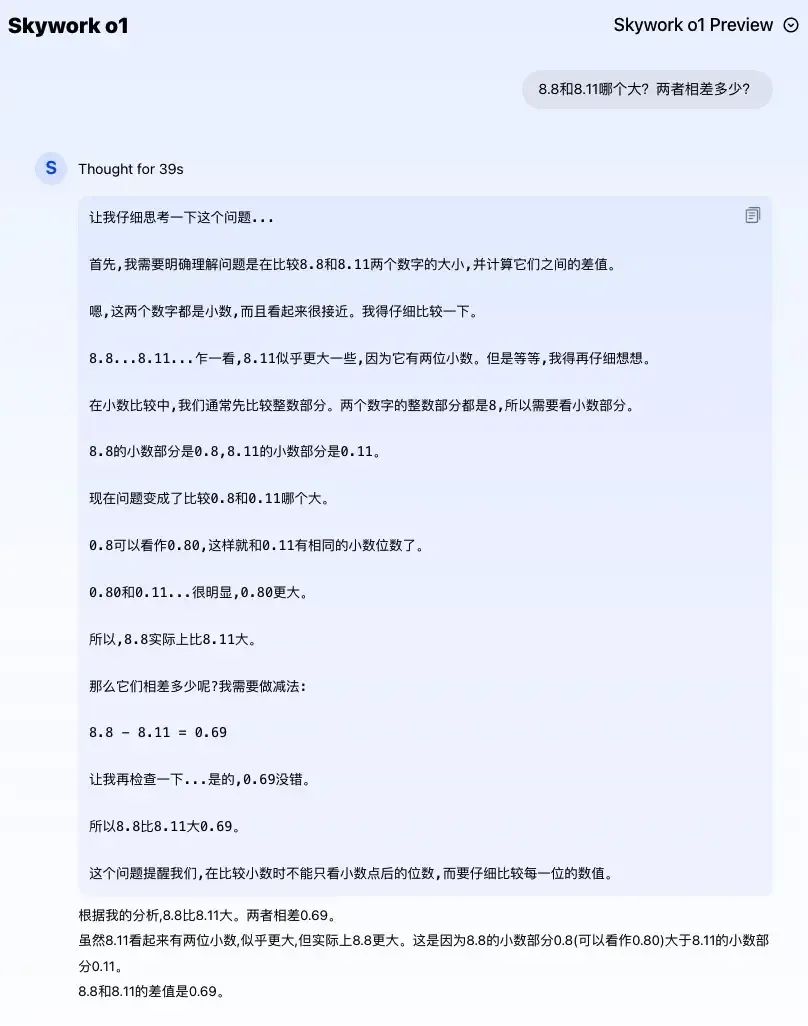 就在上周三(11月27日),昆仑万维也放出了具有复杂思考推理能力的天工大模型4.0 o1版(Skywork o1),宣布它是国内首款实现中文逻辑推理的模型。它也一次性给出了三种模型版本:开源的Skywork O1 Open、优化中文支持能力的Skywork O1 Lite,以及完整展现模型思考过程的Skywork O1 Preview。